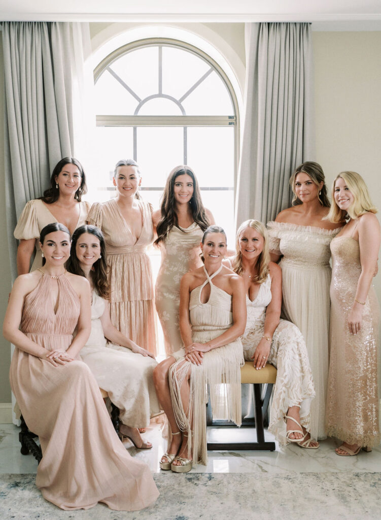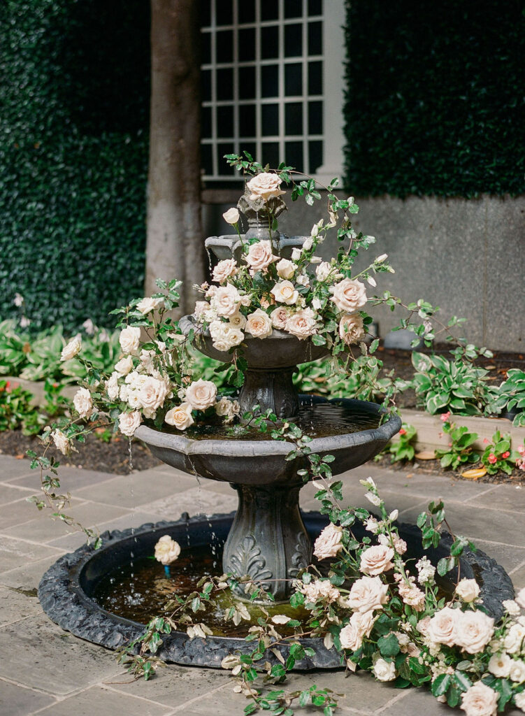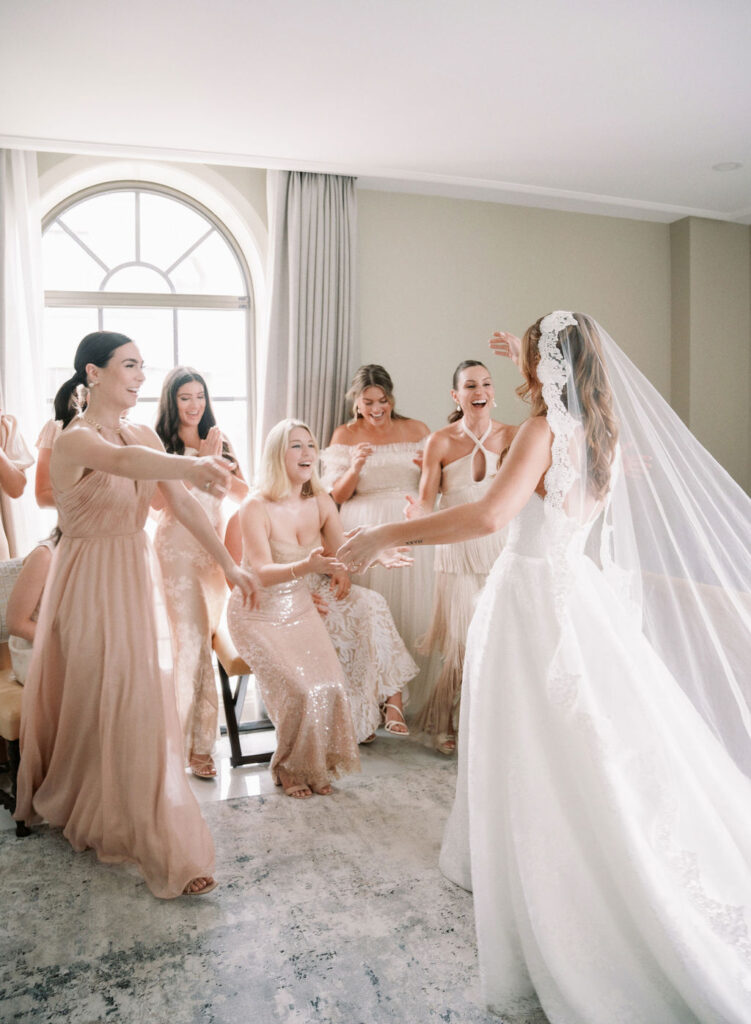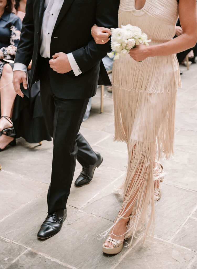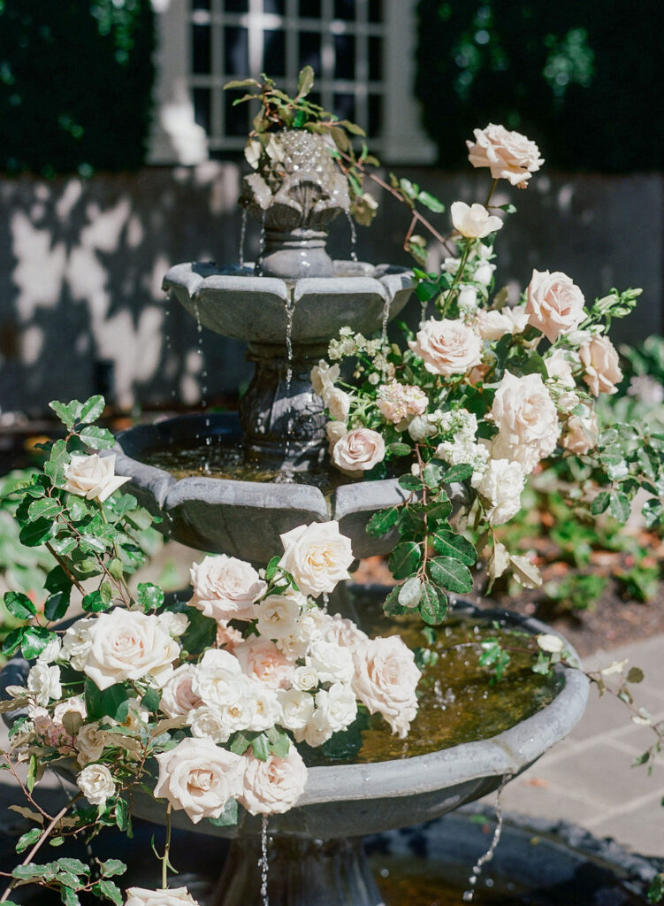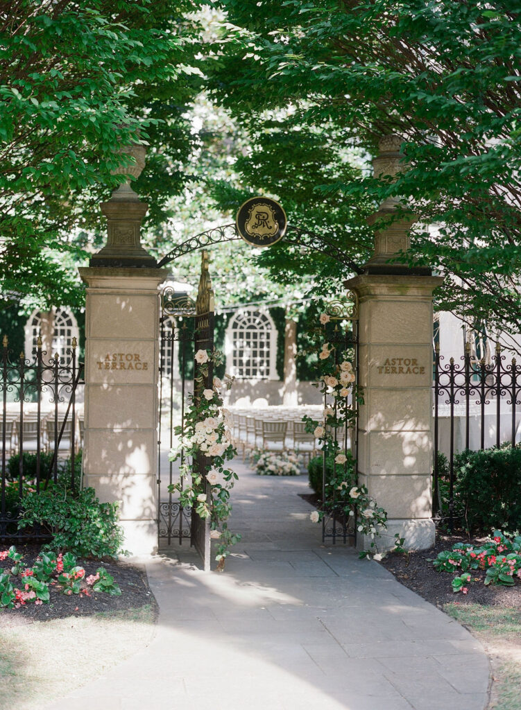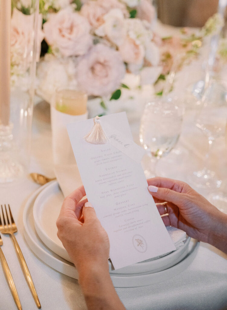 Charming European vibes and little nods to our bride's time living in France, this wedding was filled with fabulous bespoke details and great vibes only. From the terrace fountain and the gorgeous ceremony gate overflowing with flowers, to the chic toile pattern that graced their cocktail menu, to the tiny tassels carefully tied to each and every menu, we found any number of ways to make this wedding très jolie. Beyond beautiful details, this crowd knew how to party and the energy from this night was bar none. A night for the K Bella books!