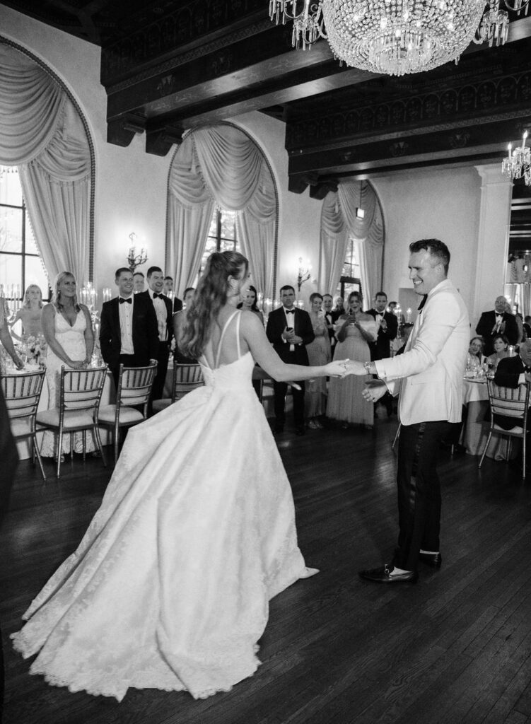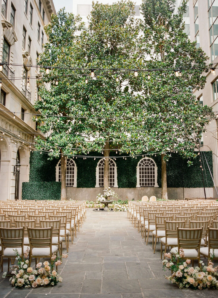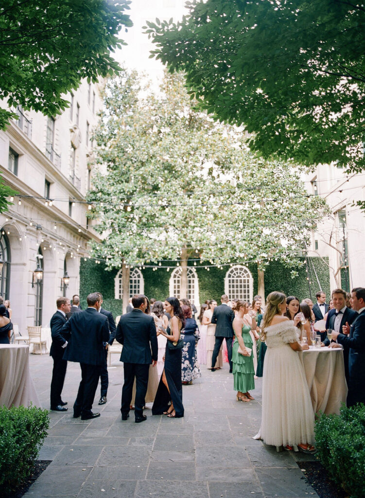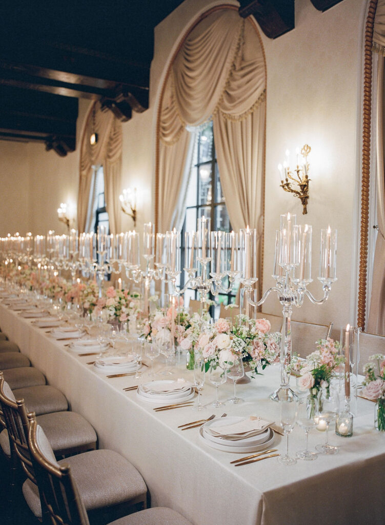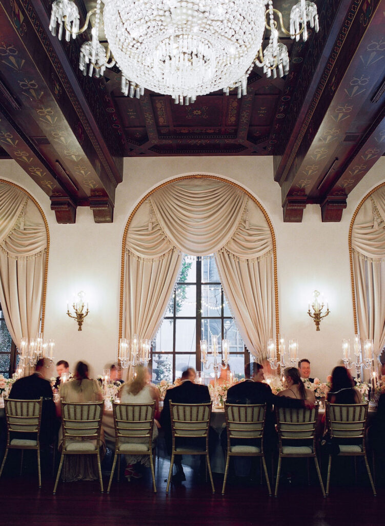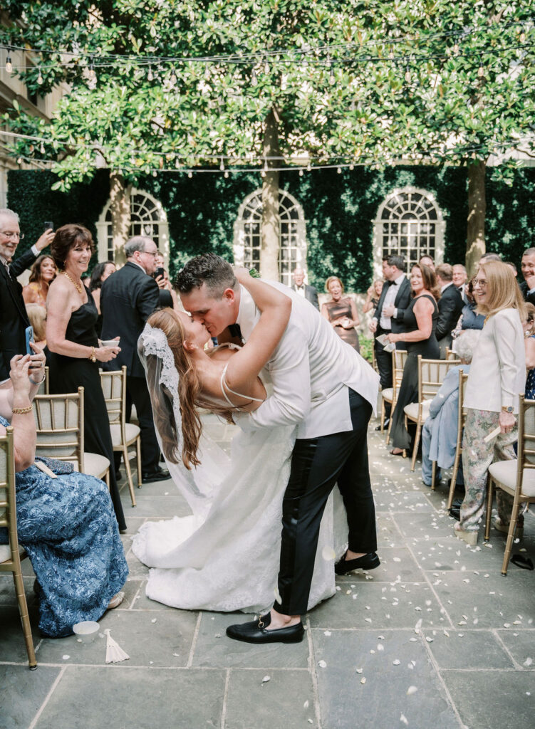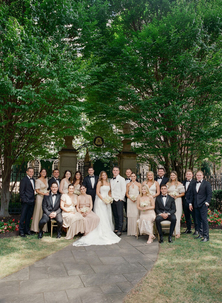 Charming European vibes and little nods to our bride's time living in France, this wedding was filled with fabulous bespoke details and great vibes only. From the terrace fountain and the gorgeous ceremony gate overflowing with flowers, to the chic toile pattern that graced their cocktail menu, to the tiny tassels carefully tied to each and every menu, we found any number of ways to make this wedding très jolie. Beyond beautiful details, this crowd knew how to party and the energy from this night was bar none. A night for the K Bella books!