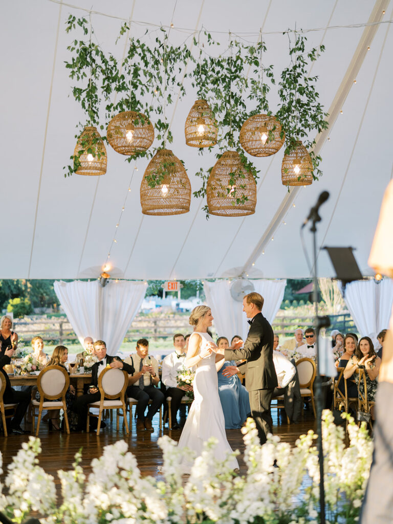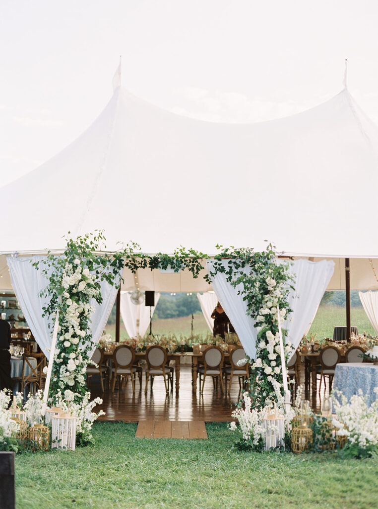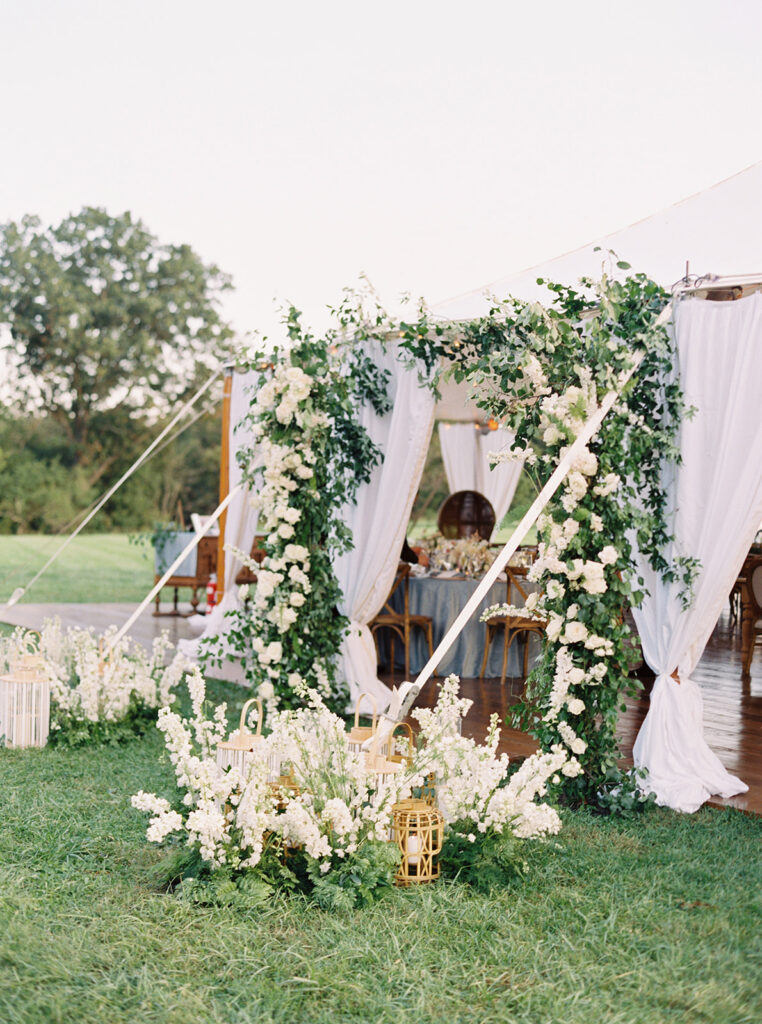 E & R hosted their dreamy, tented Goodstone Inn wedding celebration with the rolling hills of picturesque Middleburg, Virginia, as a sublimely beautiful backdrop. With a history of hospitality dating back decades and graciously outfitted with French and English decor, Goodstone Inn’s historic cottages provided quintessential countryside estate accommodations for family and friends.