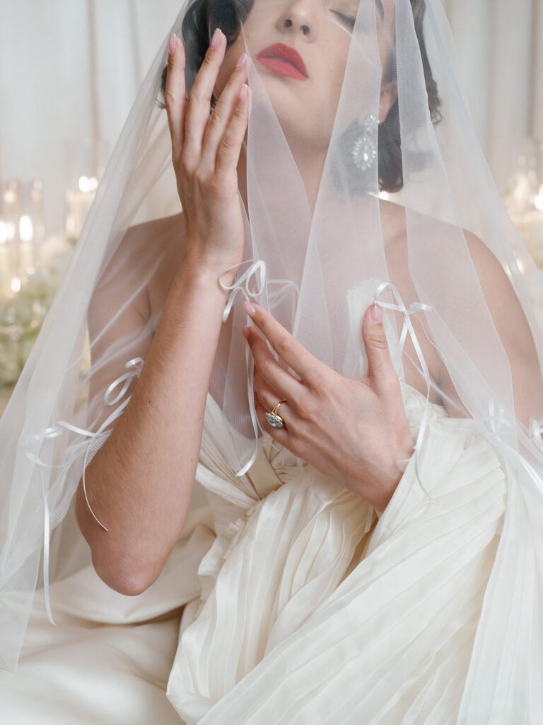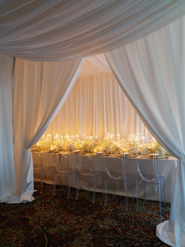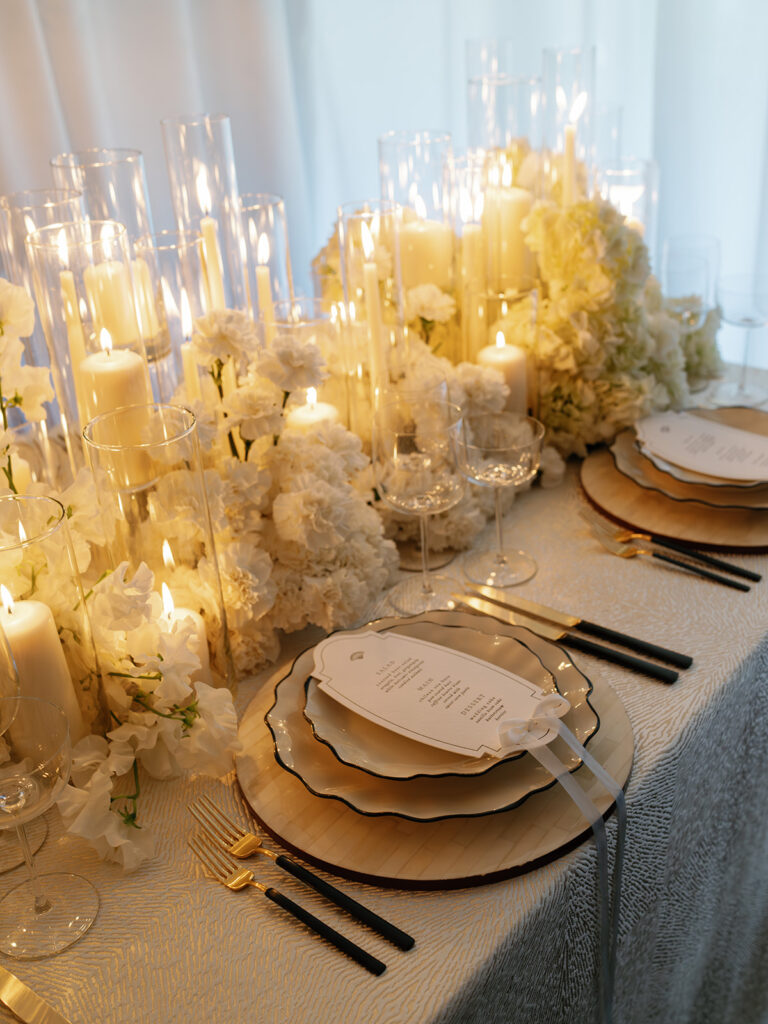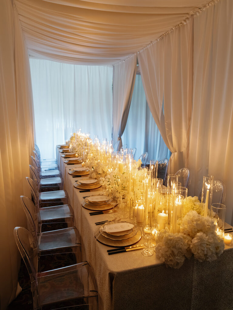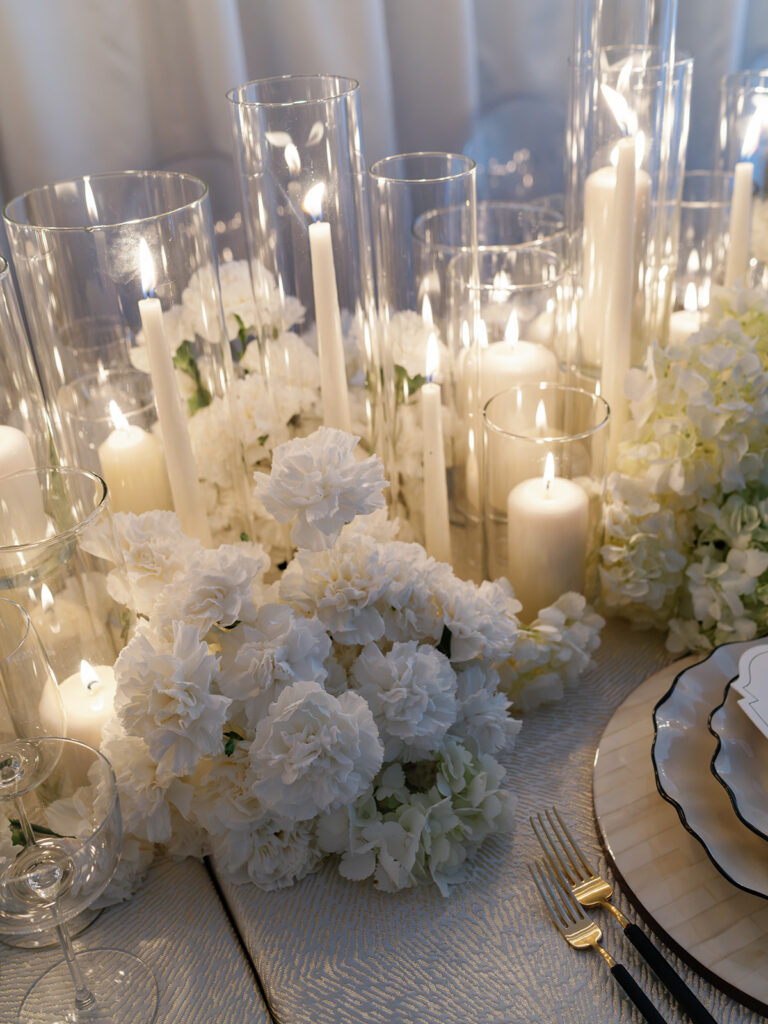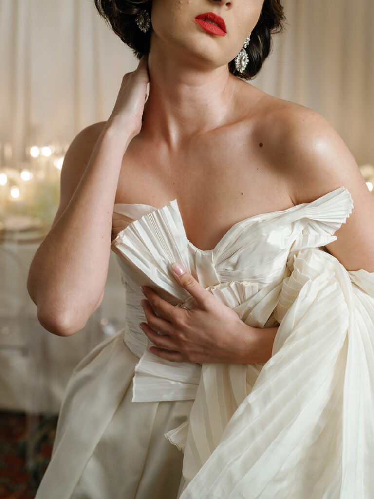 We had the privilege to produce and style an educational photography session alongside one of our favorite photographers, David Abel. Drawing inspiration from couture gown designer Karen Sabag, we pulled in details to the tabletop that glimmered to complement the candlelight of our session. Karen's gowns provided the drama, while the lighting and the floral design displayed a full spectrum of glamour for this gorgeous shoot.