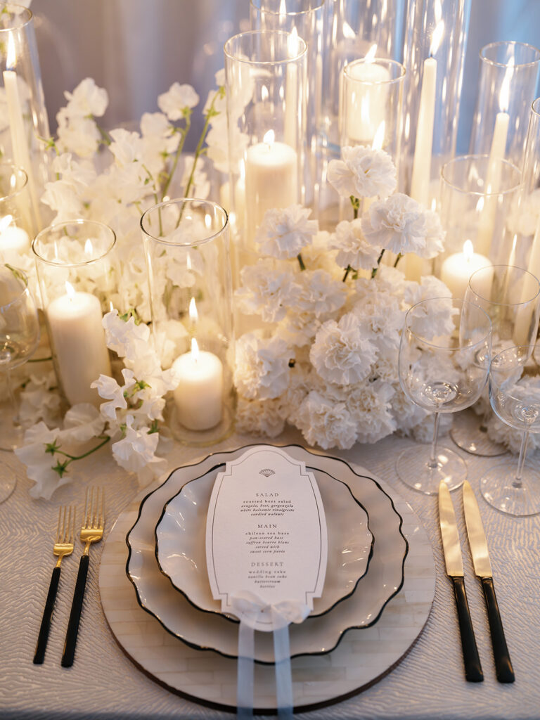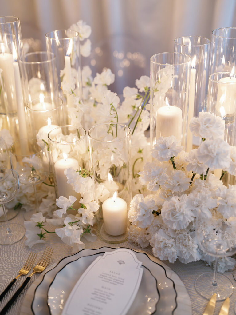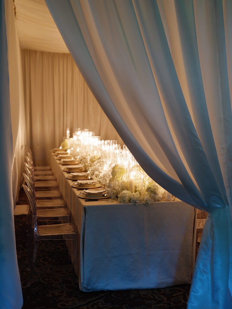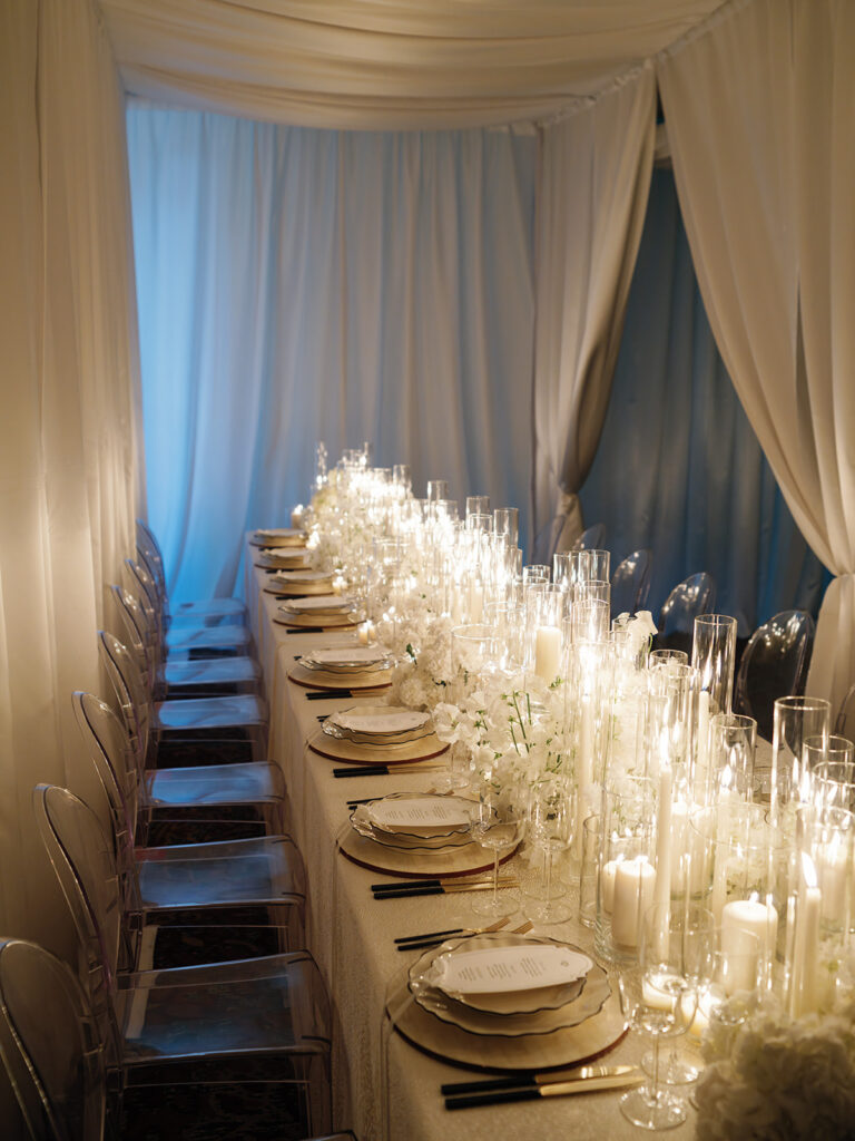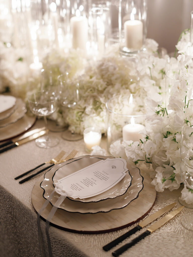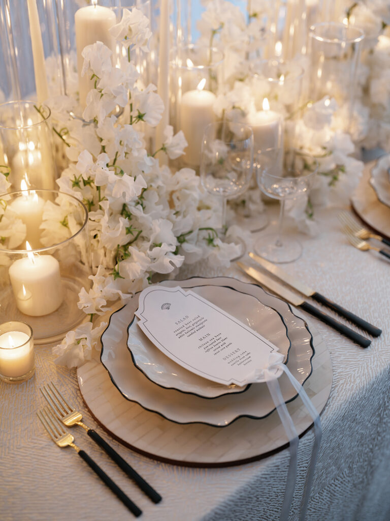 We had the privilege to produce and style an educational photography session alongside one of our favorite photographers, David Abel. Drawing inspiration from couture gown designer Karen Sabag, we pulled in details to the tabletop that glimmered to complement the candlelight of our session. Karen's gowns provided the drama, while the lighting and the floral design displayed a full spectrum of glamour for this gorgeous shoot.