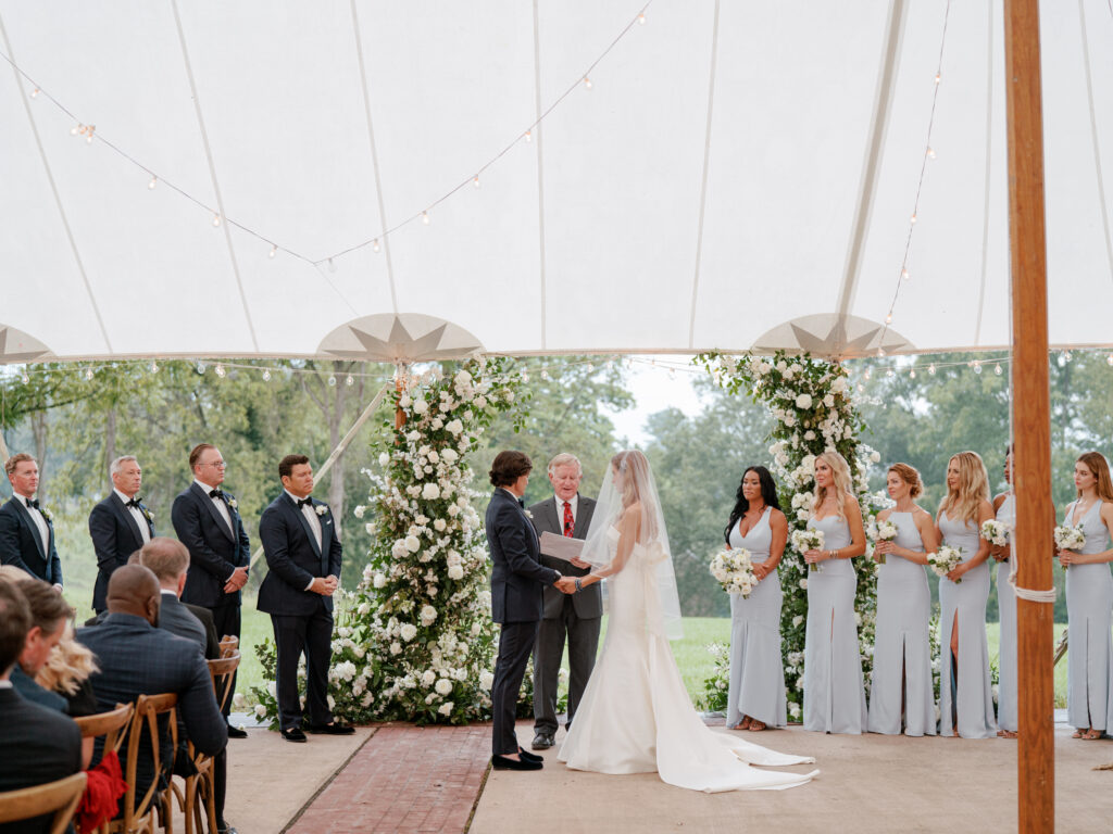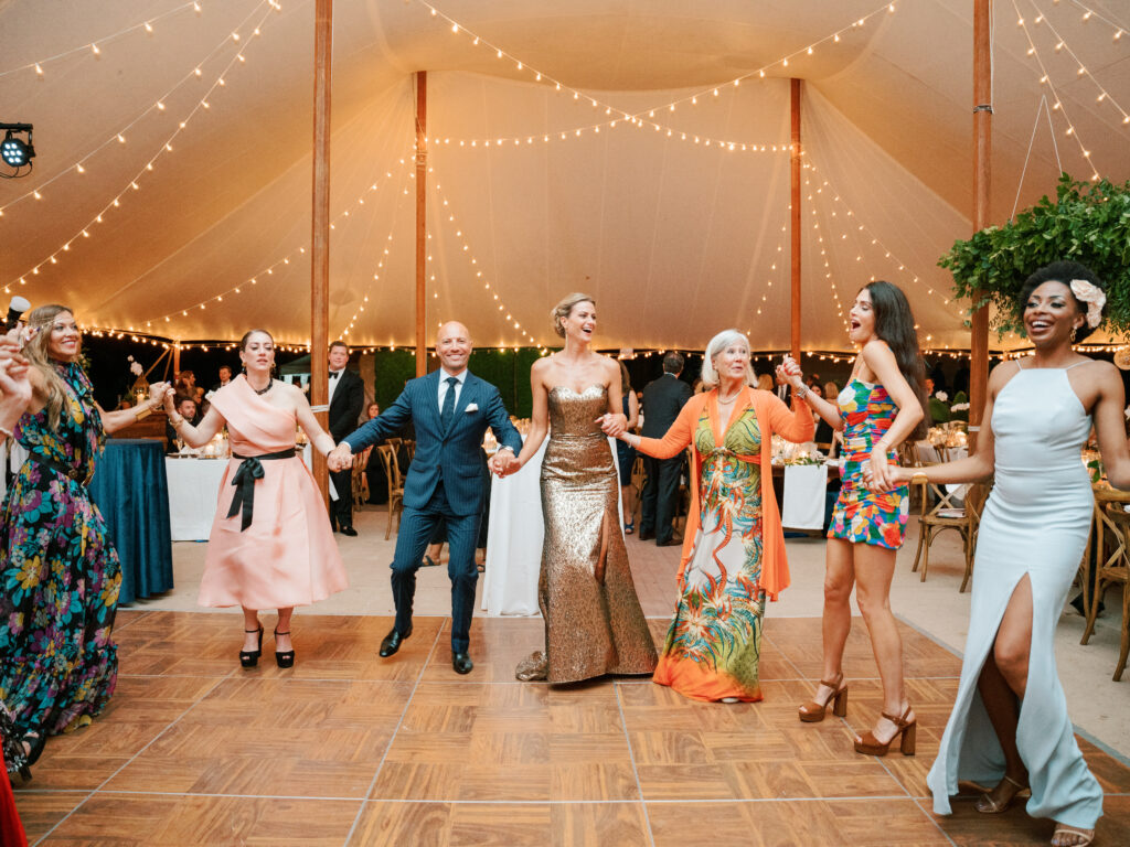 Set at picturesque Oatlands Historic House & Gardens under a gorgeous sailcloth tent, the lovely couple said their I Do’s surrounded by family and friends from near and far. Rough-hewn wood bars, leather and velvet lounges carried the polo theme throughout, while one of the oldest greenhouses in the country played host to a special Ukrainian experience. After dining al fresco, guests were serenaded by the bride herself in traditional Ukrainian dress, then invited to gather in the greenhouse to learn more about her homeland through special exhibitions of her family history, Ukrainian music and culture, and to celebrate the couple through Ukrainian wedding traditions. Under a tremendous sailcloth tent, the party lasted late, as the band played and guests danced long into the night.