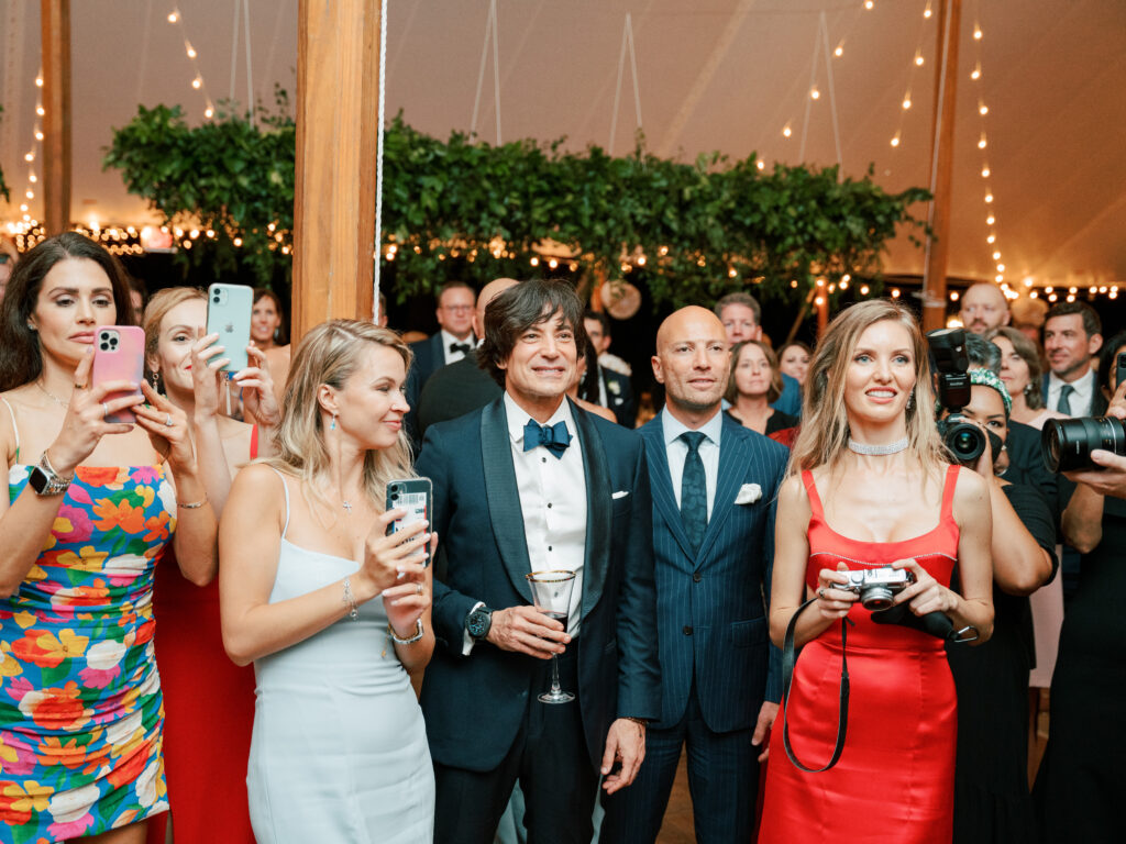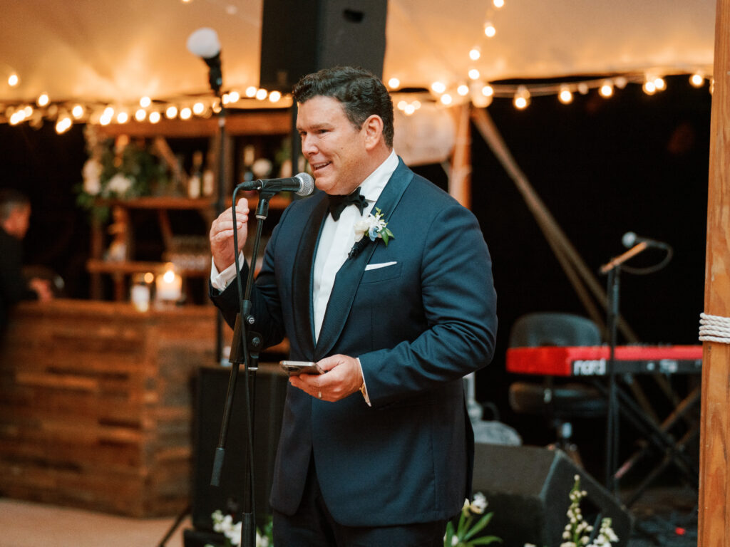 Back to where they first met, D & A shared their love of polo with their family and friends at the Great Meadow Foundation’s Twilight Polo event, where D has played polo for years. Guests watched the matches while sipping cocktails and enjoying passed hors d’oeuvres from their front row box seats, loudly cheering on Team Bride and Team Groom when D and several groomsmen joined the main polo match to play - with custom team jerseys to match.