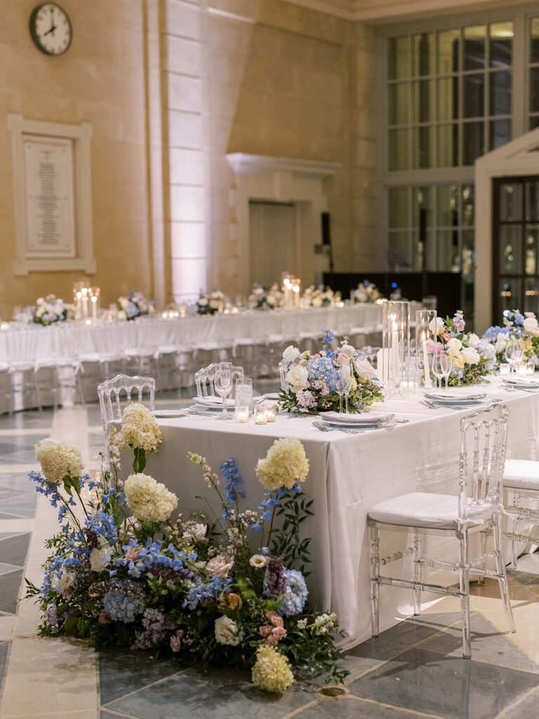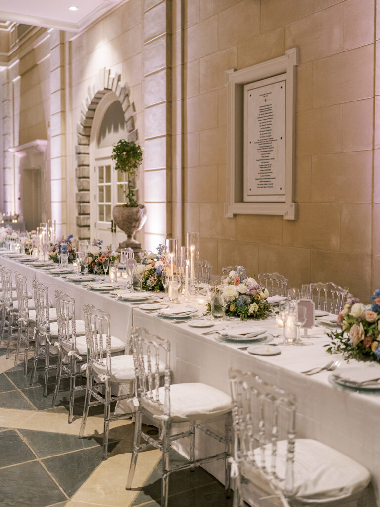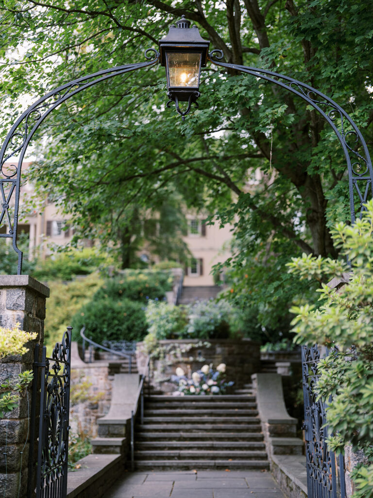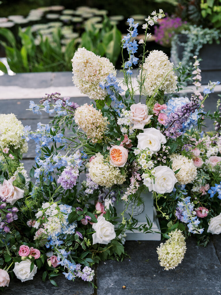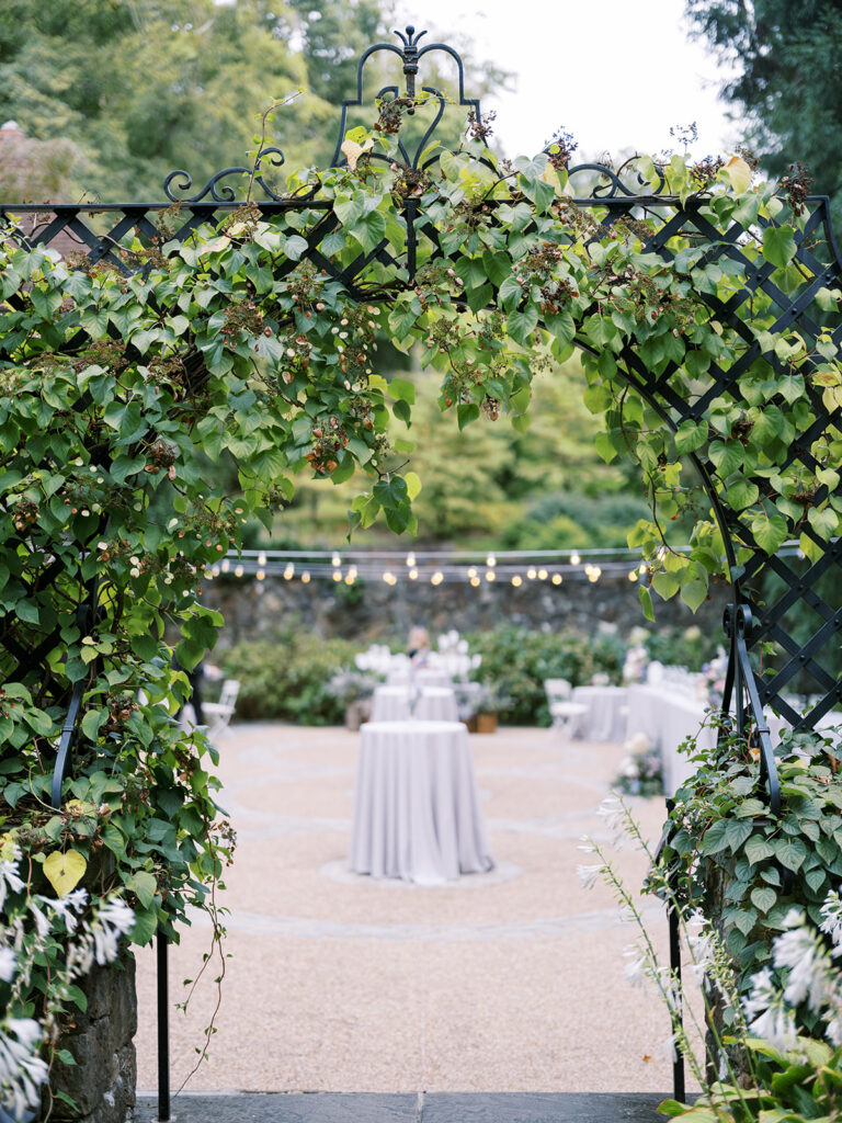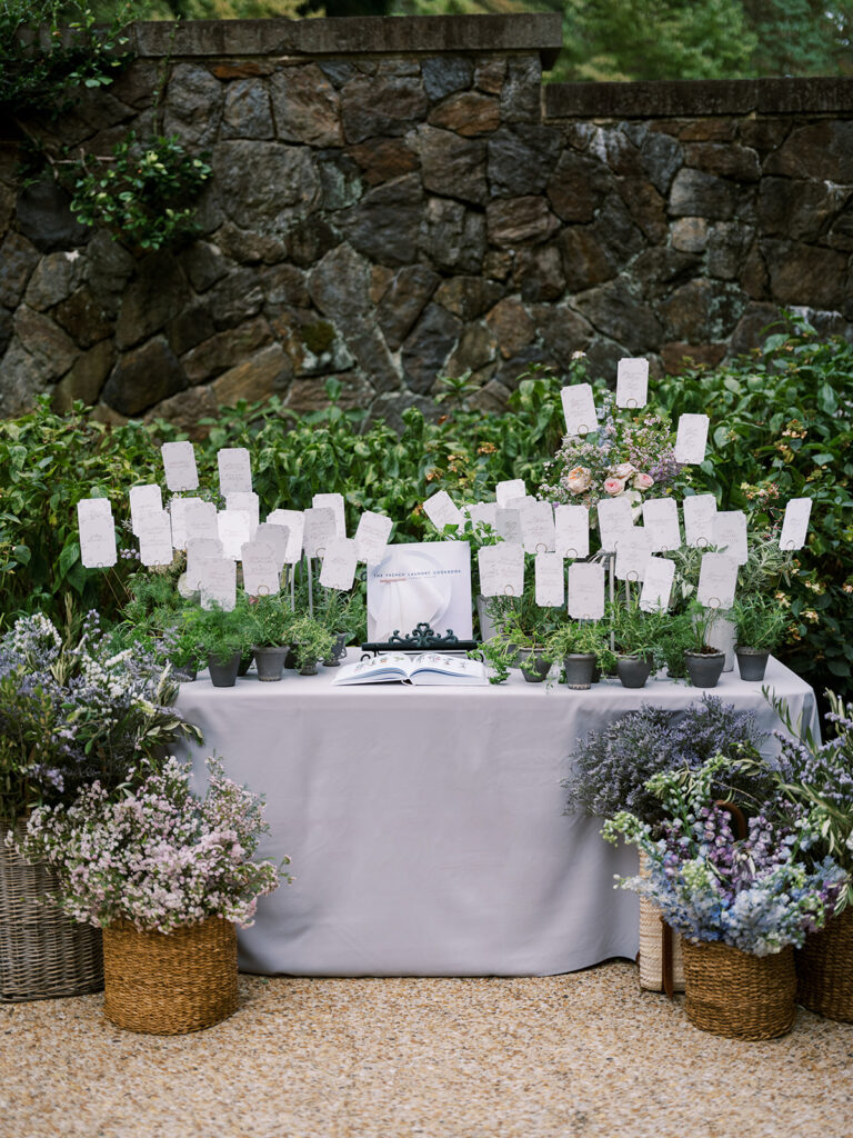With its flowing foliage and serene setting, Winterthur Museum and Gardens was the perfect backdrop to this classic garden wedding. Featuring a quiet ceremony in front of the fountain garden and a French Laundry-inspired escort table (a nod to the couple's love of culinary experiences), this scene was second only to the couple's first look at their favorite seasonal sojourn retreat, the nearby and equally gorgeous Longwood Gardens.